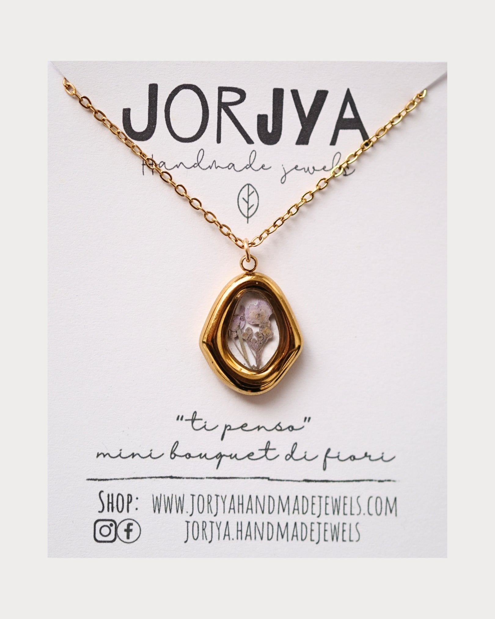 Collana "ti penso" con un piccolo bouquet di fiori di campo lilla